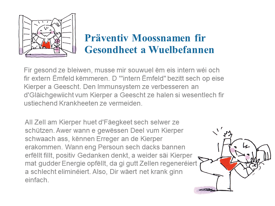 Präventiv Moossnamen fir Gesondheet a Wuelbefannen