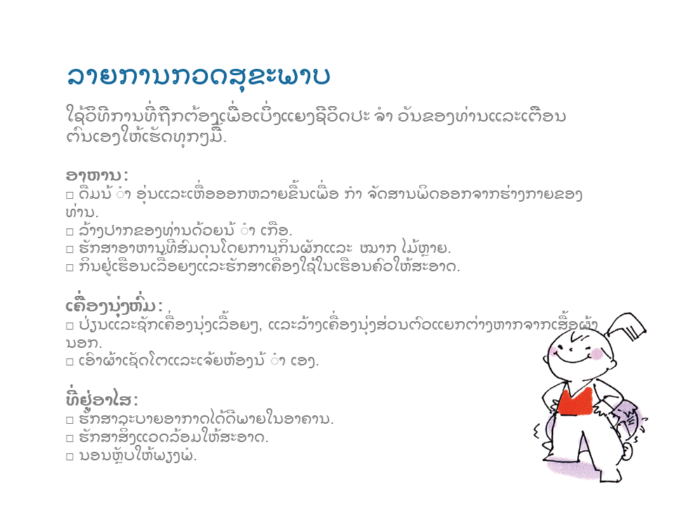 ມາດຕະການປ້ອງກັນ ສຳ ລັບ ສຸຂະພາບແລະສະຫວັດດີພາບ