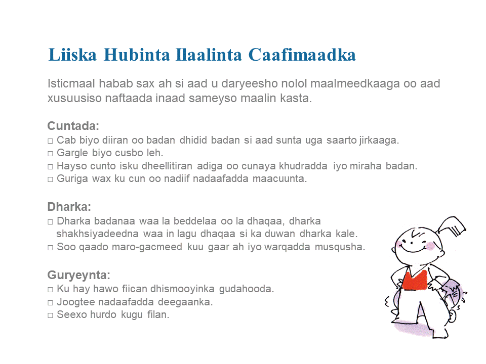 Tallaabooyinka Kahortagga Caafimaadka iyo ladnaanta