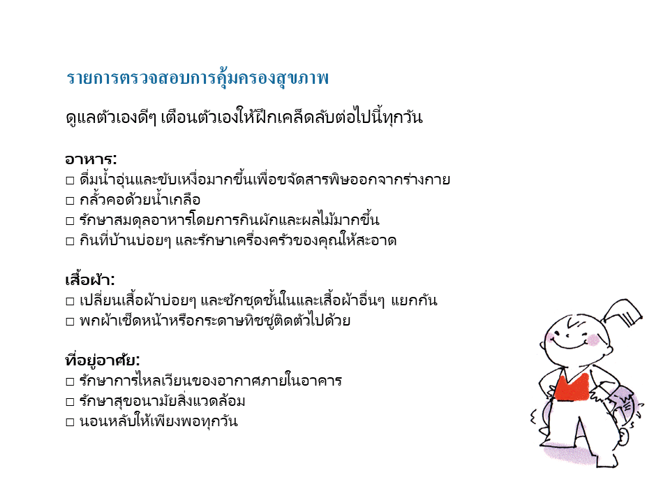 มาตรการป้องกันสำหรับ สุขภาพและความเป็นอยู่ที่ดี