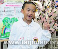 幾年前媽媽透過醫院同事的推薦,帶我進入太極門練功,一開始覺得練功好像很古老,會很無聊,不過慢慢的我發現練功可以體會到很多事情,而且也很有趣。小學五年級時,有一次我和弟弟發生爭吵,照慣例我會跟弟弟開打,沒想到那次我竟然站在床上靜靜的被他打,然後再跟他說對不起!因為我覺得自己是哥哥應該比較懂事,要讓著弟弟一些。而且 師父也常敎我們要改脾氣、要愛家人,所以當時就沒有亂發脾氣打弟弟了。