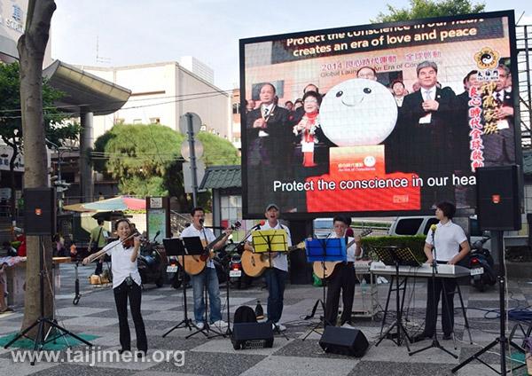 主辦單位除了在後火車站的定點展演外,還有樂團帶來和諧悅耳的歌聲,良心天使們並不時穿梭於火車站前站、站內,帶來良心歌曲與龍馬舞,所到之處總是吸引了旅客的目光!Energy Boy周昱丞說:「小時候身體不好、腸胃也不好,在太極門練功外還有機會練陣,自己的身體變好了,個性也開朗了,都可以和人很好相處。」周永祥也說:「在太極門我也學到要把握時間,就是不要浪費每一分、每一秒,做好自己該做的事,才有時間練陣、和大家一起響應良心時代運動。」鄭仲倫也表示,自己會把練陣當成在玩,可以玩、可以練身體又可以做好事。
