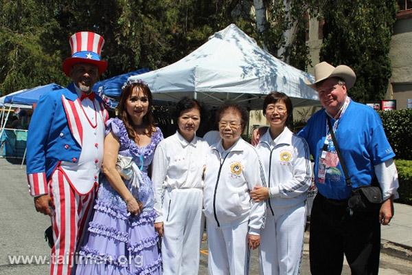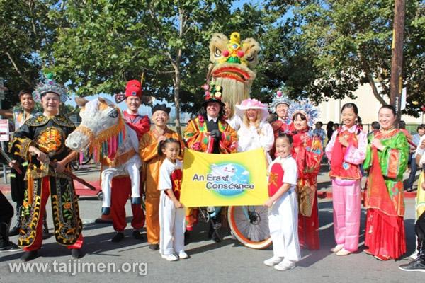 這支超過百人的隊伍中,有來自北加的庫布蒂諾市、南加洛杉磯、西雅圖、加拿大和台灣等地的成員。特別在暑期旅遊旺季,自願負擔機票、車票費用,請假,並撥空練習,就是為了送出愛與歡喜的正面能量,祝福美國生日快樂!國泰民安。太極門掌門人洪道子博士也在遊行車隊中,向民眾祝福與致意。洪博士日前因為發起及推行全球性的「良心時代運動」,獲得世界電影協會所頒發的「人道精神奬」。而太極門將武學藝術化的展演,更被好萊塢製片家安東尼奧推崇,認為符合聯合國非物質文化遺產的特性。