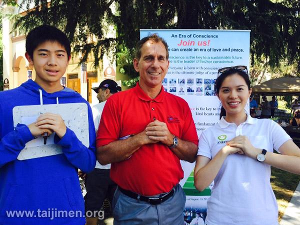 太極門除了受邀參與遊行,還在街區設有攤位,積極推動「良心時代運動」。肯定人人都是良心領袖,期望人人在各自的崗位上,說良心話、做良心事,發揮善的影響力。州議員 Evan Low說:有機會居住在一個有高度自由的國家,對人民來說是很珍貴而重要的事情,並非常開心看到這麼多海外的朋友一起慶祝國慶。聖荷西市議員Ash Kalra亦對所有太極門的成員,尤其是來自海外的參與者表示歡迎,他認為不論這個世界發生什麼不好的事情,最終改善的方式還是從自身做起,讓自己存有和平之心,並關愛周遭的人,如果人人都能這樣做,就能走向更和諧的世界。參議員 Bob Wieckowski則表達:我在議院所提倡的就是經濟平等。在法律面,讓每個人能夠得到更平等的待遇。我相信良心一部分所代表的就是我們不願意去看到人們受到不平等的對待,不管是在法律上或就業上受到任何歧視或因為不夠富有而接受較少的教育,我們希望提升每一個人的福利,不管他們是老或少、亞裔美國人或是波裔美國人。希望你、我、他串成一個好言善行的能量圈,一圈圈擴大至全世界,就能打造愛與和平、世界一家的理想境界。