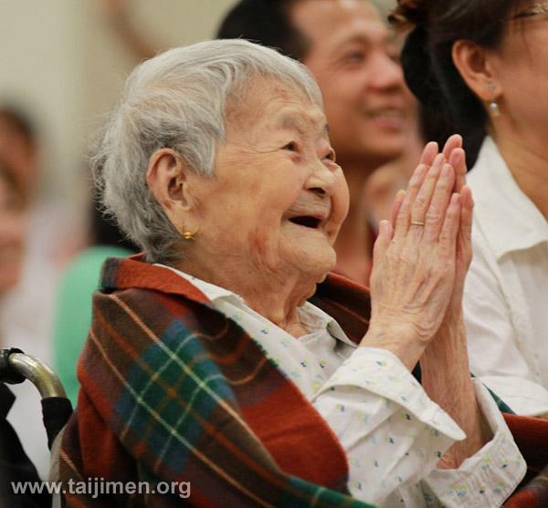 根據國發會推算,十年後,台灣將進入老年人口超過百分之廿的超高齡社會,老化速度全球第一。因應老年社會銀髮族要如何讓自己保有健康快樂呢?今年77歲的陳黃育幸談到過去沒有練氣功前,做家事常會閃到腰,甚至雙手還有肌腱炎,無法端鍋子,對一位家庭主婦來說,非常的痛苦,但是練氣修心之後,這些毛病都已改善,省下不少醫療費用,現在她形容自己是個健康快樂的阿嬤,因為全家三代同堂有十多位一起在太極門練氣功,讓她很放心,而且每年她與80多歲的良人師兄健康檢查都沒有紅字,也沒有在吃藥,想到就很滿足、快樂。