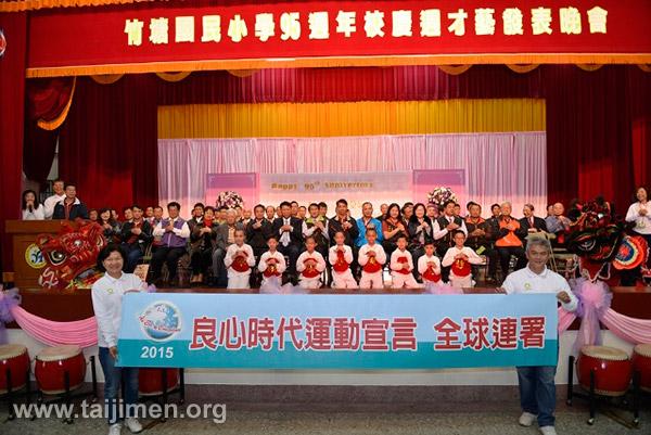 彰化縣竹塘國小95週年校慶活動於4月11日熱鬧展開。竹塘國小屬於典型鄉村小學,學區家長以農為主,校長楊深耕以「竹風亮節,塘育品格-以德成人」為品格教育推動之願景目標,結合多方資源,透過多元活動、深耕閱讀、服務學習、環境營造等,讓學生涵養十項品格內涵「禮貌、關懷、服務、合作、負責、誠實、孝敬、感恩、欣賞、自省」。此次校慶,校長楊深耕特別邀請聯合國NGO世界公民總會志工到校同樂,以園遊會攤位響應「良心時代運動宣言」連署,太極門氣功養生學會更以「喜迎五寶良心啟,陶鑄群英安家邦」為竹塘國民小學95週年校慶活動揭開序幕。彰化縣陳善報副縣長表示,盼用愛來關懷每個人,大家共同來關心別人、關心周遭環境、關心地球!