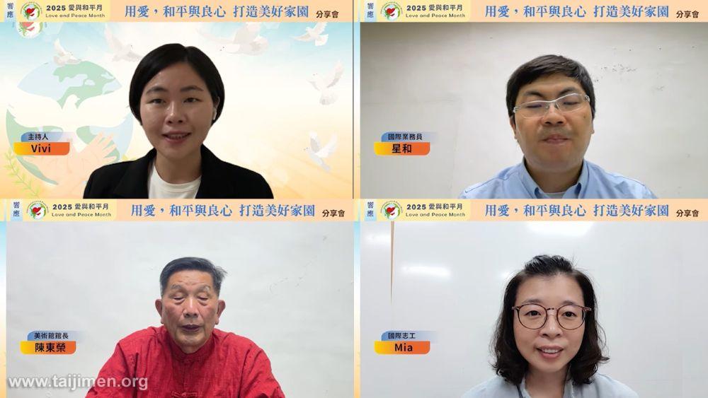 【記者吳宜靖/苗栗報導】為響應「愛與和平月」,由聯合國NGO世界公民總會、聯合國NGO世界公民總會台灣總會、良心時代運動、太極門氣功養生學會、WPN世界民報、GPDN (Global People Daily News)、太極門文教基金會、和美基金會在9月23日上午播出「用愛、和平與良心 打造美好家園」線上節目(https://youtu.be/mrLTge1TTkE),邀請各界人士分享他們的良心故事。