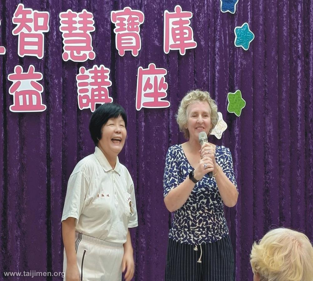 太極門50週年時,她遠赴美國參與良心運動的推廣,雖然長久任職於外商公司,英文並不生疏,但她笑說:「真正讓人開口的是一聲『嗨』,互相打招呼、傳遞溫暖,那份勇氣其實是大家給我的。」她在參與太極門活動時,聽了上百場講座,也學會做PPT簡報、傳單、影片等,因為需要所以學,學到就立即做到,看師兄師姊們用上自己的作品,讓她特別有成就感。在太極門練功二十年,她從不間斷地早晚練功,她認為練功最怕一個「懶」字,持之以恆就會看到變化。她提到疫情期間許多人焦慮恐懼,但她反而更健康,她也確診過,但幾乎沒症狀,真的很感恩。