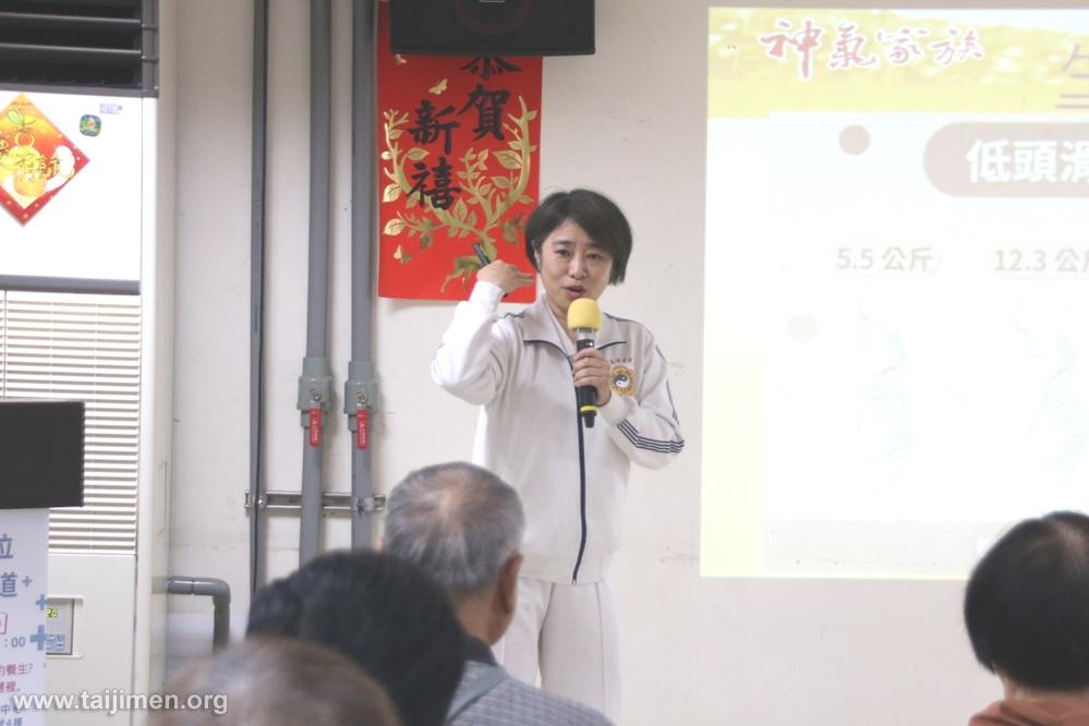 蔡佩玲指導里民簡單的動作,讓氣能夠通,陰陽能夠平衡。