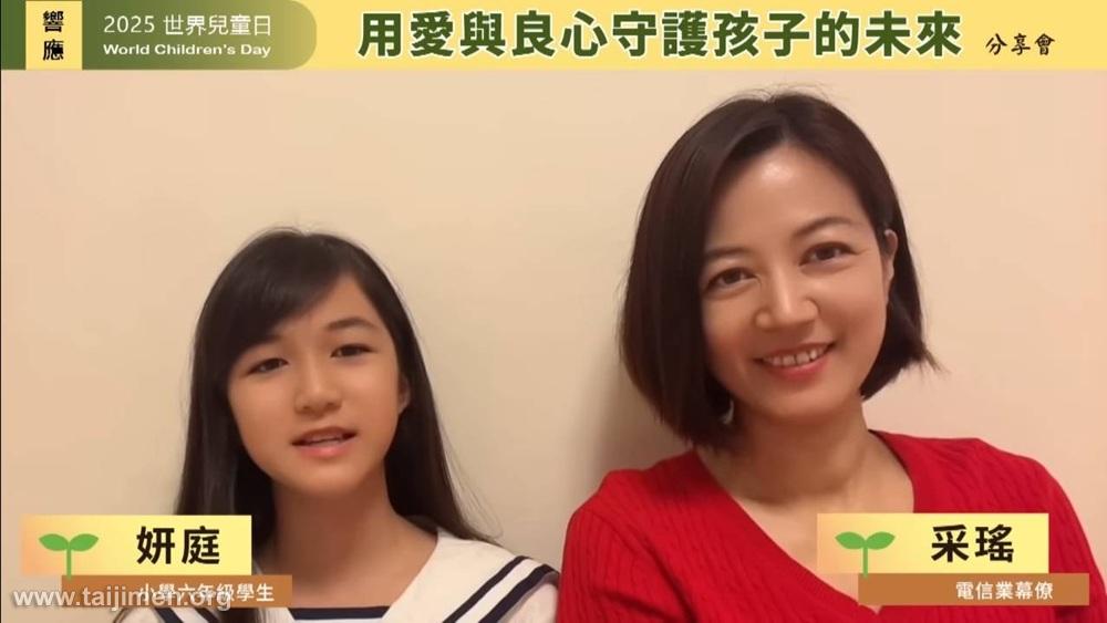【記者周子於/台北報導】為響應聯合國「世界兒童日」對全球兒童權益的重視,和美基金會、太極門文教基金會及良心時代運動網站、聯合國NGO世界公民總會、太極門氣功養生學會,於11月20日聯合舉辦「用愛與良心守護孩子的未來」線上分享會,邀請教育工作者、家長和太極門兒童代表與會,透過真實的成長故事,強調在充滿變動與挑戰的時代,良心教育是引導下一代擁有同理心、勇氣與智慧的關鍵。