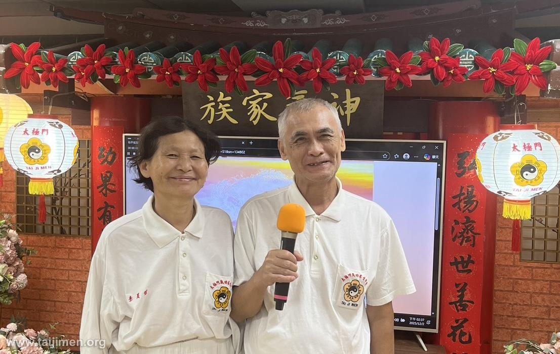 入門後,他努力修正自己的缺點。以往常因一言不合而起衝突,如今能先冷靜、學會轉念,家庭關係更加和諧,內心也更安定。他說:「師父教我們要勇敢,今天站在這裡分享,就是我勇敢的開始。」他表示,非常感恩師父的教導,讓他身心靈都大大受益,能成為太極門弟子讓他倍感榮幸。