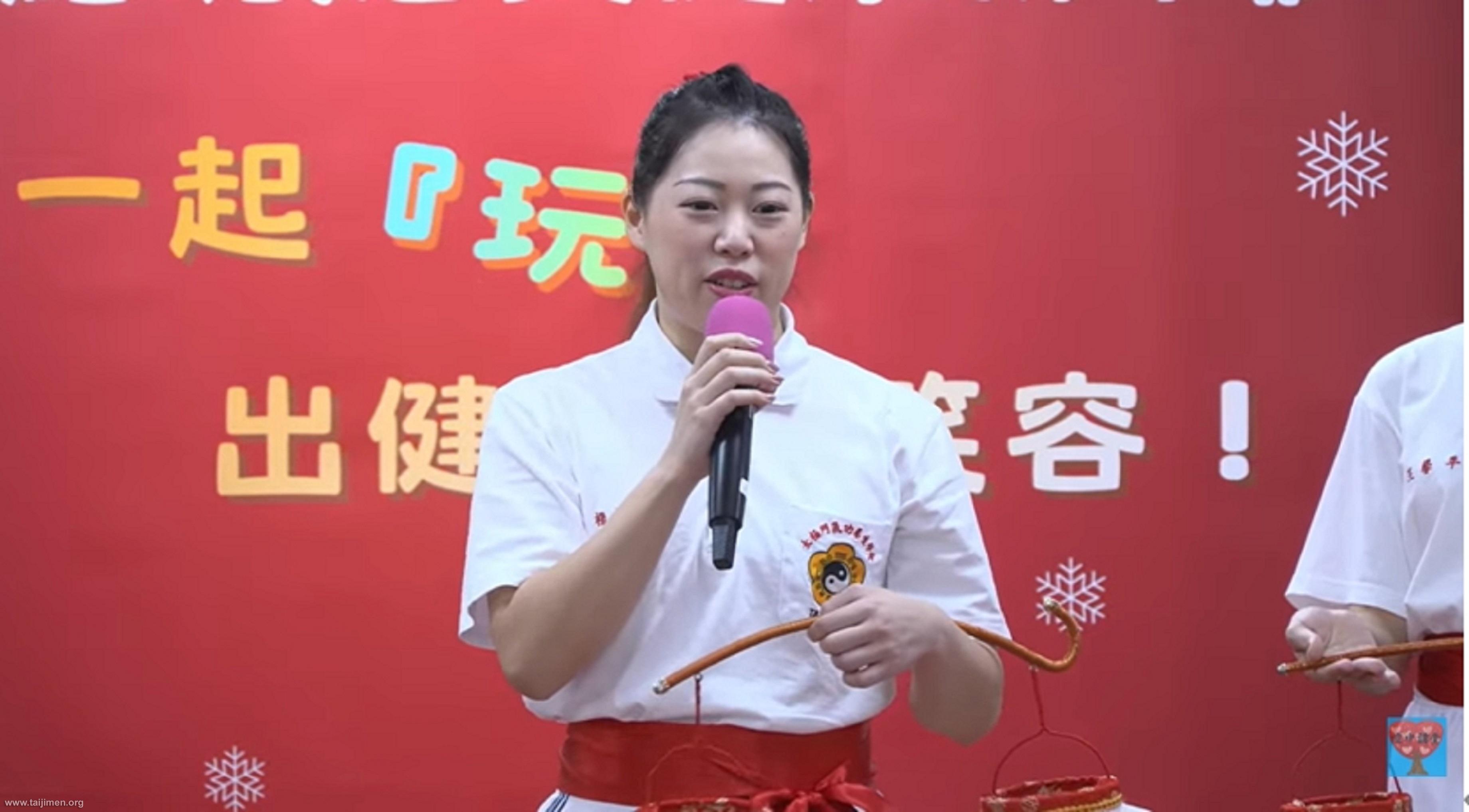 入門練功將近2年,加入手語陣組才4個月的靜娉,分享她在9年中罹癌兩次,目前雖然正進行第二次的癌症治療,但她覺得自從來到太極門後,真的是神清氣爽、愈來愈有元氣了。以前的她,整天無所事事,如今生活有目標了,還可以很神氣的跟師兄姊一起出陣,她變得愈來愈開朗、快樂。