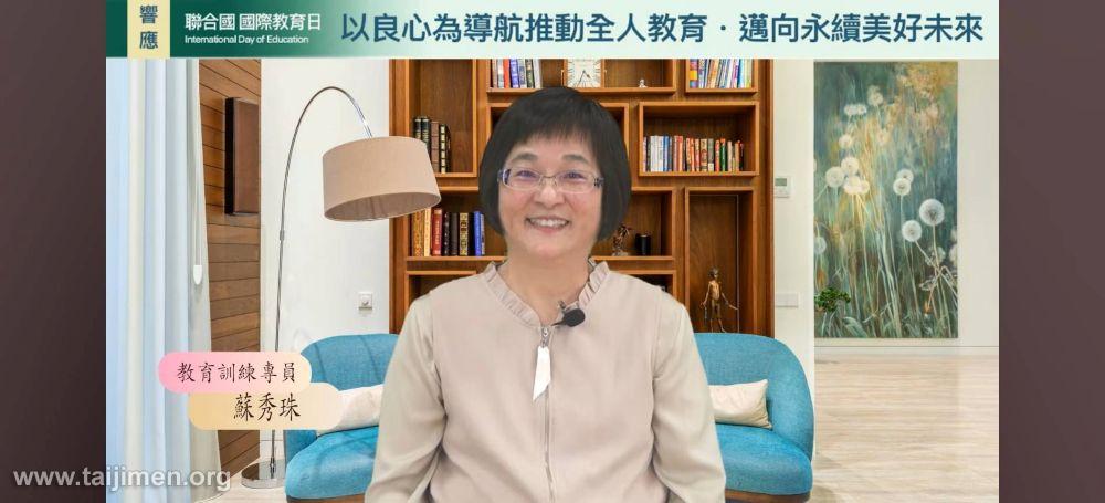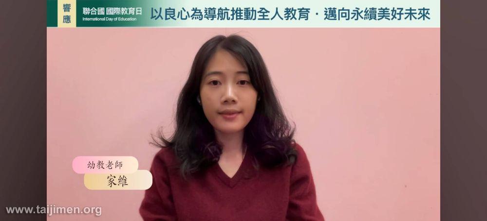 她表示,今年國際教育日主題「以良心為導航推動全人教育 邁向永續美好未來」,是對第一線教育工作者的重要提醒。她指出,當孩子衝突時引導其理解他人感受、在孩子犯錯時給予被愛與負責並存的空間。幼教現場教導的不只是認字與數數,還包括情緒表達、自我覺察、合作與生活照顧。當孩子在遊戲中學習等待與分享、在被傾聽中建立自信,教育才能真正照顧到孩子的身、心、情與品格發展。