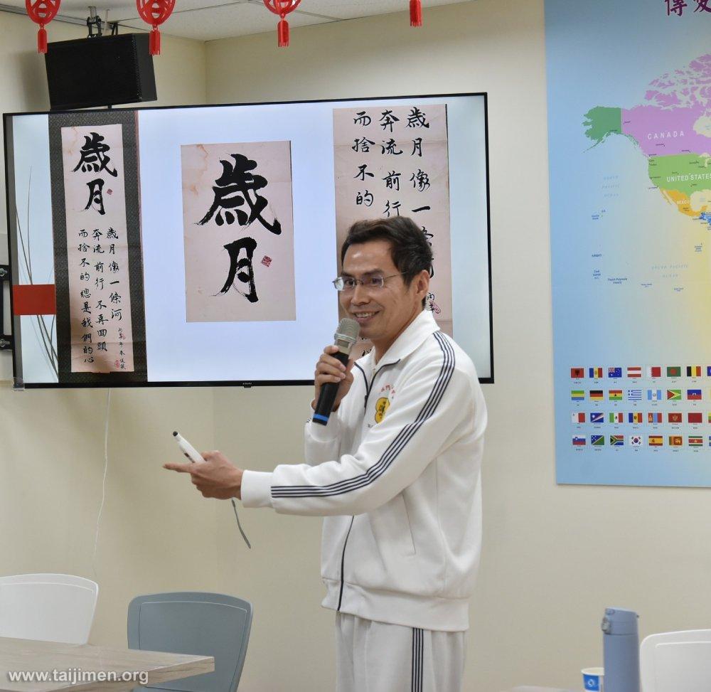 許俊發幽默地表示,沒聽過《蘭亭序》,也應該聽過周杰倫唱的《蘭亭序》。他提到王羲之在微醺狀態下自然流露的,清醒後再也寫不出同樣境界。王羲之初學時「像喝醉的蚯蚓」,受旁人嘲笑,但他每天練習,寫到整池水都變黑,甚至廢寢忘食,把墨汁誤當蒜泥吃。他提到,王羲之喜歡觀鵝,看牠轉頭、伸頸,領悟出筆勢的轉折與提捺之妙。許俊發學生時代學過書法,他表示,學氣功能靜心、專注,有助於書法的進步,且能把心境呈現在作品中。許俊發現場揮毫,寫春聯,獲得熱烈的迴響。