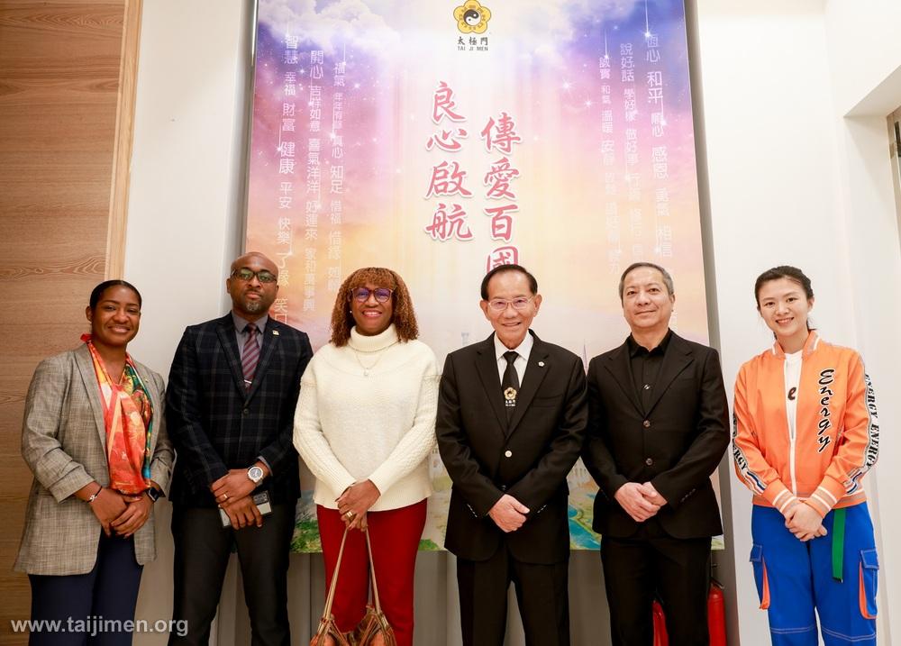 拜訪活動特別安排七位太極門Energy Boys & Energy Girls展演《We can change the world》歌曲,在祥和的歌聲中,傳遞只要人們遵循良心指引,團結起來,這個世界將會更好。二位弟子代表Erica與Howard,分享自己在太極門練氣修心的成長與收穫。公使Dr. Elroy Wilson看完展演表示,這是一首非常美麗的歌曲,傳遞愛與和平。自己也是熱愛音樂的人,歌曲非常平靜、安定,舞蹈也非常出色,真的很美。他很感謝有機會來到這裡,因為每天醒來,常常聽到有人受苦、戰爭及各種犯罪。但如果人們培養愛、幸福與和平,就能讓彼此的生活一天比一天更美好。參事Shebby-Ann S. C Dennie對洪博士在全世界傳播希望與愛的使命,感到非常敬佩。因為她本身在基督教家庭長大,父親是一位牧師,一生也在做同樣的事情。因此,讓她感受到一種家的感覺,一種歸屬感,她非常珍惜這種感受。