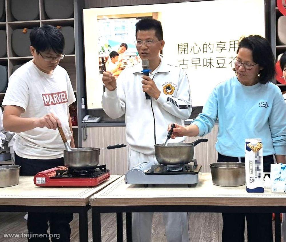 生活達人陳榮昌表示,三十多年前加入太極門神氣家族後,逐漸找到身心健康的生活方式。活動中他特別分享一道古早味豆花的做法。他指出,做豆花的關鍵在於火候與耐心。做法並不複雜:先將27克豆花粉加入100ml冷開水攪拌均勻;再將936克豆漿以中小火加熱至約95度、微微滾起的狀態,接著將熱豆漿沖入已調好的豆花粉中,靜置約15至20分鐘,豆花即可凝結完成。