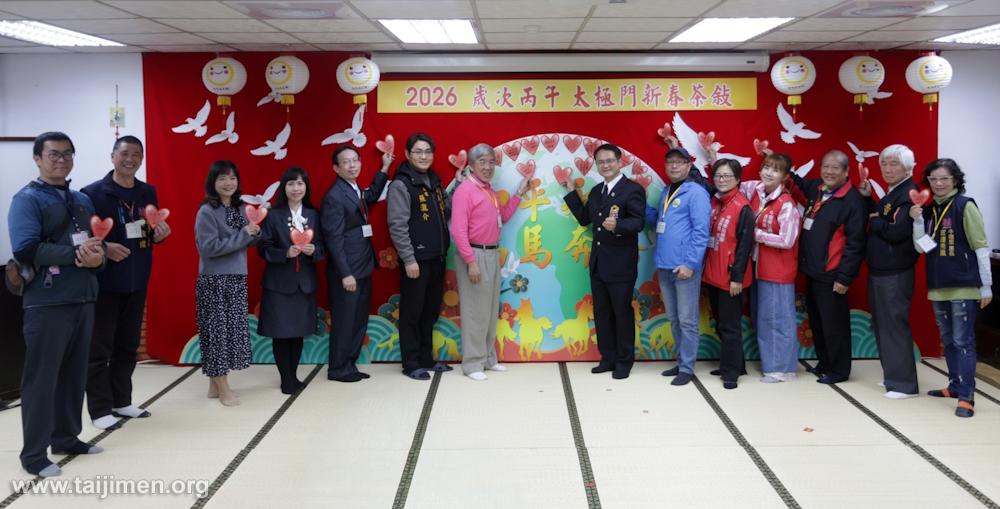 新春帶來新開始與新希望,值全球局勢動盪,更需要溫暖與正能量安定世局,今年適逢太極門氣功養生學會成立60週年,中壢、環北道館於3月14日在中壢道館盛大舉辦「和平永續 福馬奔騰」新春茶敍活動,包括市議員黃敬平、桃園市八德區區長蔡豊展等近百位各界賢達親友齊聚,共300餘人迎春納福,凝聚心力為世界祈福。活動融合優質文化展演、焦點儀式、公益講座與趣味闖關遊戲等,現場洋溢歡笑聲與溫馨氣氛。