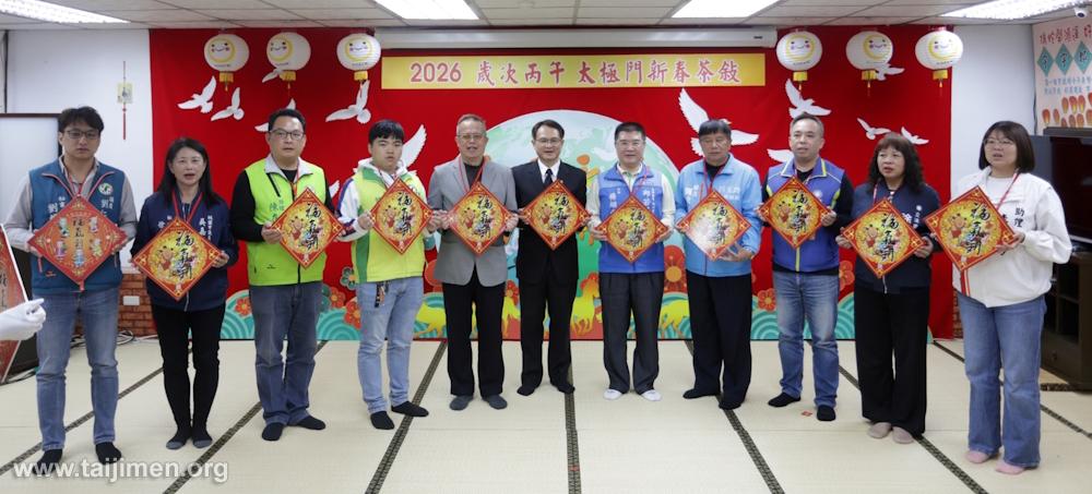 太極門中壢、環北新春茶敍各界貴賓齊聚,以良心手勢傳達愛與祝福。