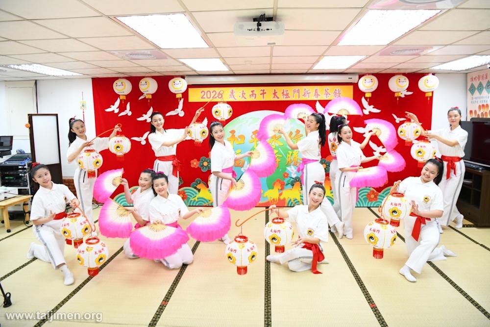 文化饗宴由神氣十足的祥獅獻瑞,帶來歡欣喜氣;柔美典雅的太極門文舞陣以飄扇和燈籠傳送希望與愛;樂活手語陣為世界送上和平祝禱;可愛的小師兄姊則帶來「愛與和平 世界一家」唱跳展演;明亮歡喜的展現,讓現場洋溢熱鬧的年節氣氛,也讓來賓感受到太極門文化的深厚底蘊。