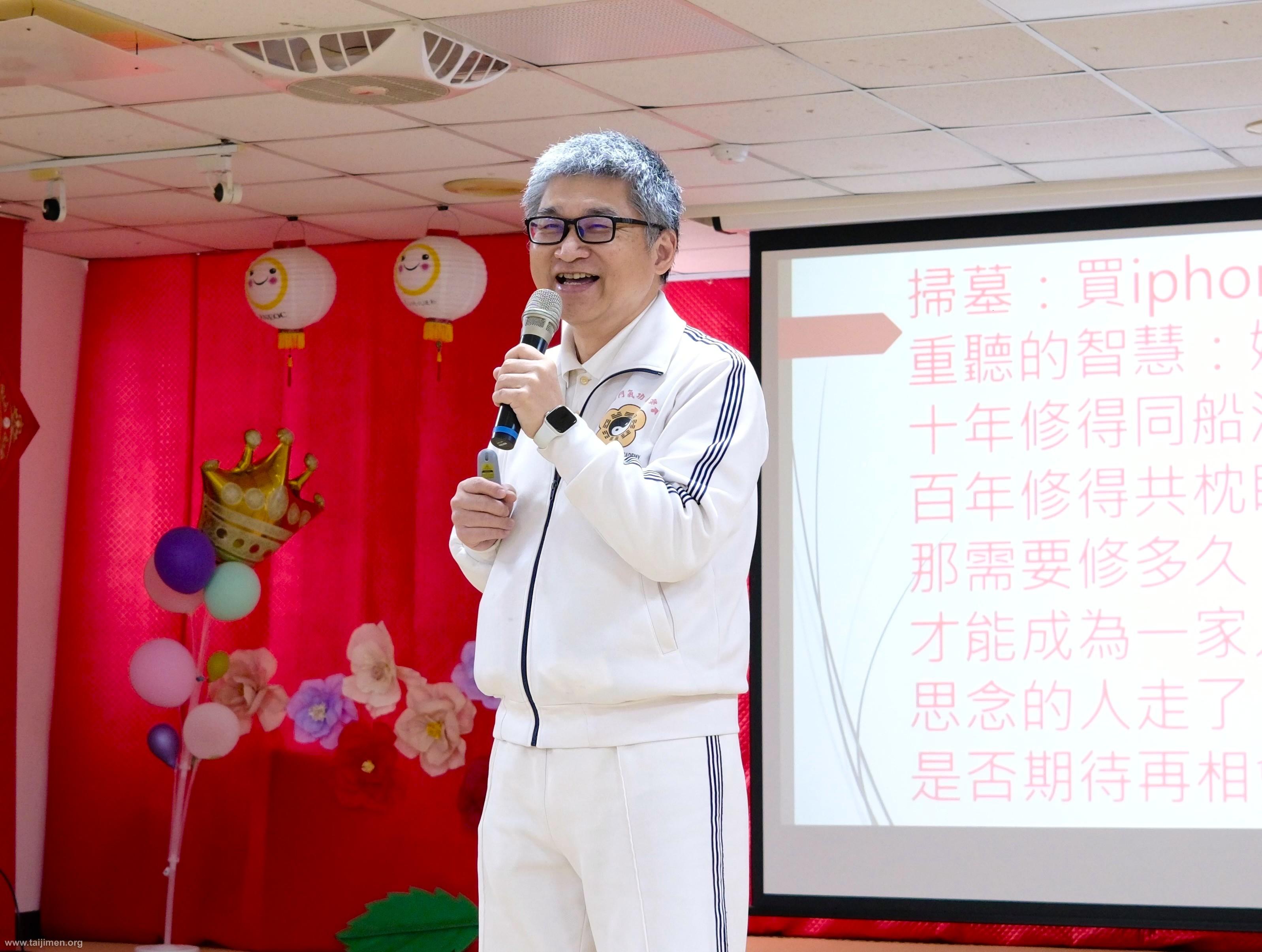 台灣已進入超高齡社會,長壽是否等同於幸福?4月6日清明連假期間,太極門環北道館特別邀請退休教師沈信廷以「氣順,就笑(孝)了」為題,分享他照護高齡雙親的深刻體悟。沈信廷指出,人生有三件事絕對不能等:「健康、孝順、了緣」,並強調透過練氣養生與修心,能讓人在生命難關中開啟智慧,找回家庭的和樂與平安。