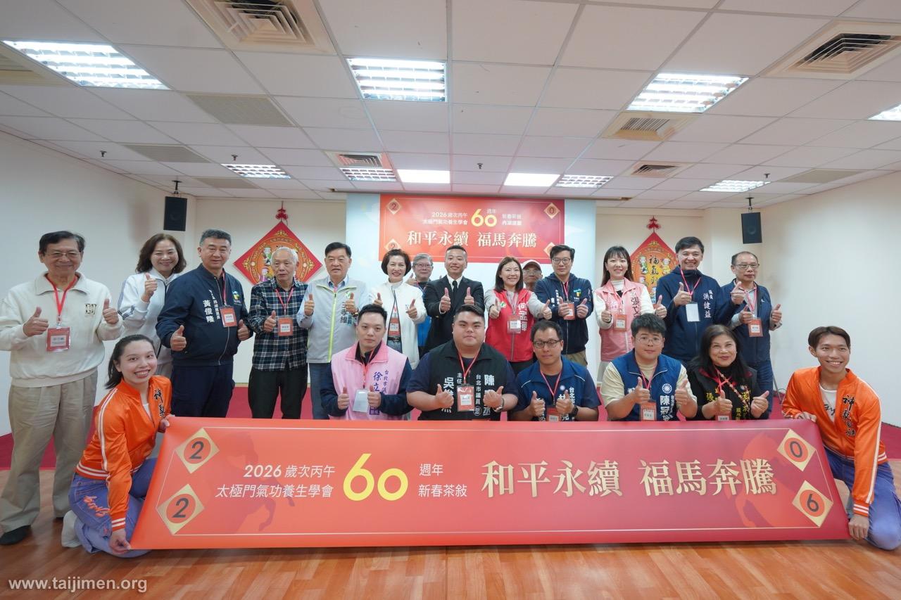 太極門氣功養生學會於2026丙午馬年迎來成立60週年的輝煌里程碑。內湖道館於3月14日舉辦「和平永續 福馬奔騰」新春茶敍,超過百位各界貴賓、鄉親好友共同參與,現場貴賓雲集,立委、議員、區長、里長們紛紛來相賀。