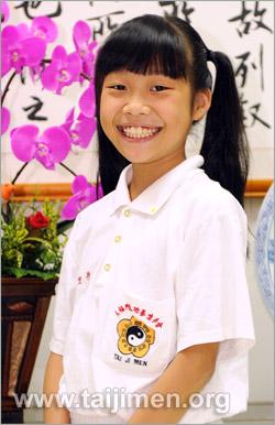 每天練功與打坐的另外一個好處就是,晚上睡覺時很快就睡著了,而且早上起床時精神很好,我就會很開心、高高興興地去上學,心情都很好。我的師父教我們要存好心、說好話,還有師兄師姊都對我很好,很親切的跟我說話,就像一家人似的;我有把在太極門學到的功夫用出來,所以在學校都能跟同學和平相處,大家每天都是笑嘻嘻的,都很開心、很快樂。