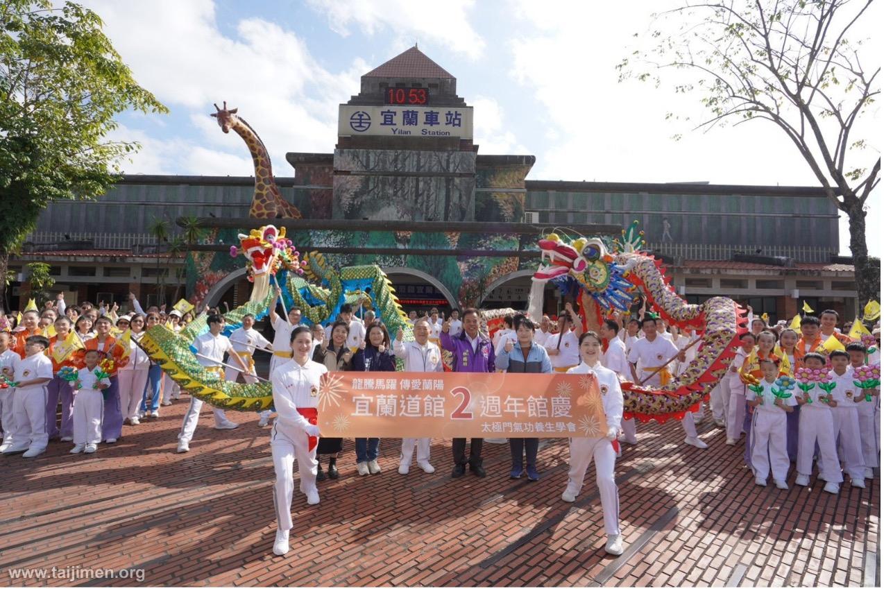 當日上午,由太極門師兄姊古法製作龍架龍身、親手縫製龍袍的「宜蘭勁好龍」首次亮相,自道館(宜蘭市宜興路一段65號)出發,展開賜福踩街遊行。超過百人的神龍隊伍氣勢磅礴,沿路經過宜蘭火車站等地標,展現「蟠龍如意 神龍賜福」慈悲、勇敢、真智慧的善意能量,最終抵達中山小巨蛋,矯健靈動的展演吸引許多民眾及國際友人駐足,接收這份來自古老神獸慈悲、勇敢與真智慧的祝福。許多民眾開心表示,看到神龍遊街感到非常歡喜,彷彿為新的一年帶來了龍馬奔騰的生氣與好運。