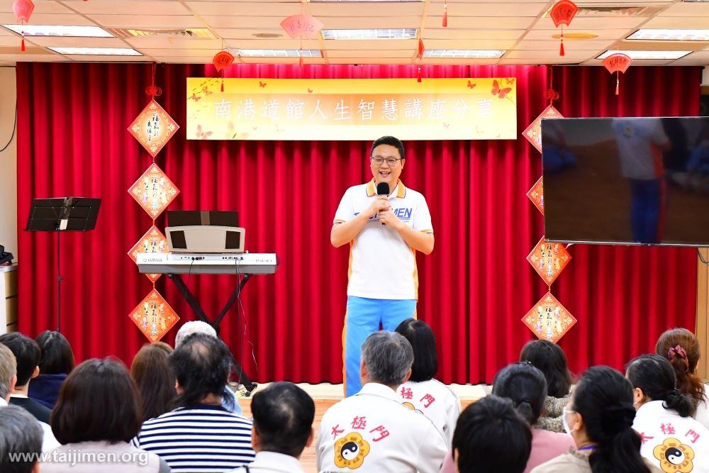 有許多成長的故事,只要心懷感恩、學會轉念,就能克服困境,迎向光明。他讚許肖碧葉師姊有正向的心態,這心境的轉換正是太極門精神的體現——相互支持、相互關心,每個人都能在困境中找到力量,在挑戰中找到希望。他強調太極門不只是修練的道場,更是一個溫馨的大家庭。