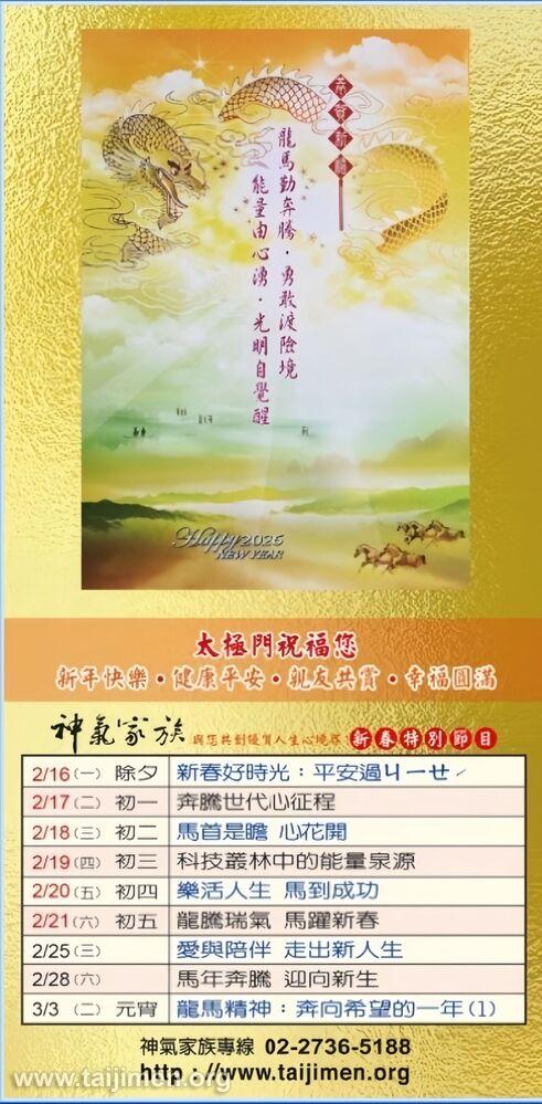神氣家族賀歲迎馬年,歡慶太極門氣功養生學會六十週年,傳遞愛與希望正能量祝福全球。