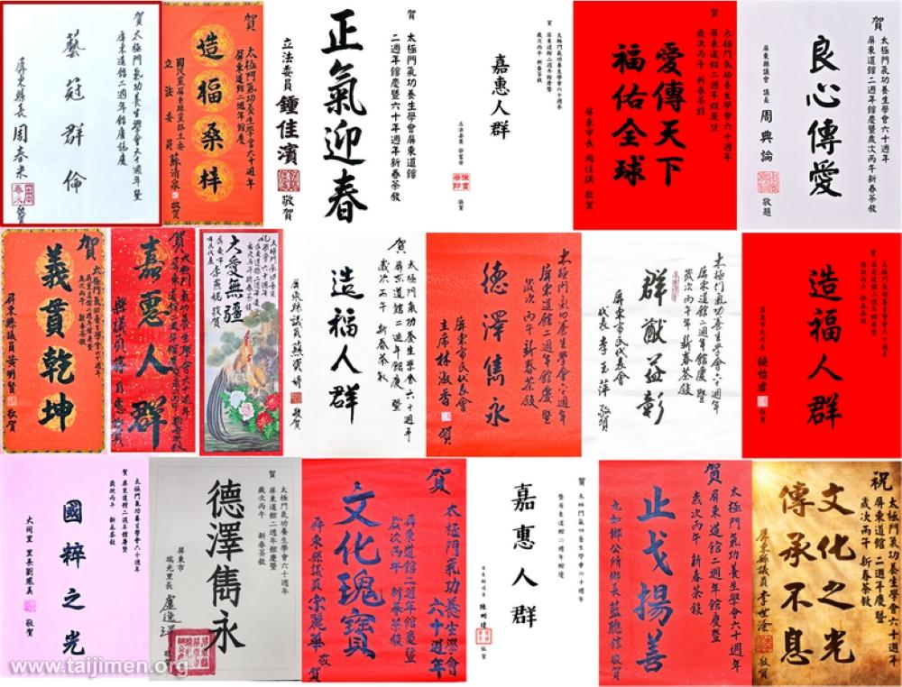 各界致贈中堂、墨寶、賀函,為太極門氣功養生學會60週年暨屏東道館館慶、新春茶敍獻上祝福