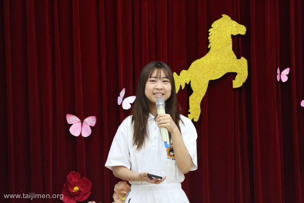 ​  品儀憶起在全省各道館互動交流時,曾因為所屬的苗栗道館只有她一人到場,而感到孤單與尷尬。但在師兄姊的愛心引導下,她跨越了區域的隔閡,學會在人群中分享心得。正是這種長期「上台」的練習,讓她在國中畢業前,面對老師詢問是否有意願擔任「在校生致詞代表」時,品儀能毫不猶豫地應允。在練陣時不只體力變好,也讓她懂得時間管理、更能勇敢跨出、挑戰從前不敢嘗試的事情,這份勇氣是練功最珍貴的禮物。