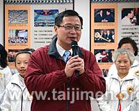 2月12日雖然春雨綿綿,低溫寒冷,卻澆不息桃園縣大家長以及縣民的熱情,晚間不到8點桃園縣長吳志揚、民政局副局長徐喜廷以及社會局社會發展科科長,共同蒞臨太極門中壢道館,響應推動良心時代活動。吳志揚縣長一踏入太極門中壢道館,由小師兄師姊送上「福氣到」的掛飾,接受滿滿的福氣,喝功夫茶,感受古老門派的待客之道,青少年以及銀髮族的師兄姊帶來歡樂送五寶的歌舞,呈現的是神氣大家族的歡樂與薪火相傳,生生不息,縣長與大家一同感受濃濃的年味,共同推動「良心時代」運動,在元宵節前,別具意義。