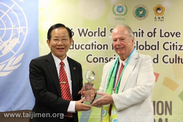 此外,在40國NGO組織代表參與的「2016愛與和平世界高峰會」中,聯合國/NGO AWC主席瑞內‧瓦德羅博士頒發「世界公民永續發展獎」給洪博士,肯定他和所帶領的「世界之愛和平親善文化訪問團」於全球推動愛與和平的貢獻。