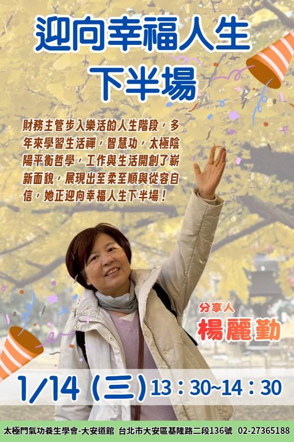 2026-01-14 13:30~14:30 大安道館 (主講人:楊麗勤)
