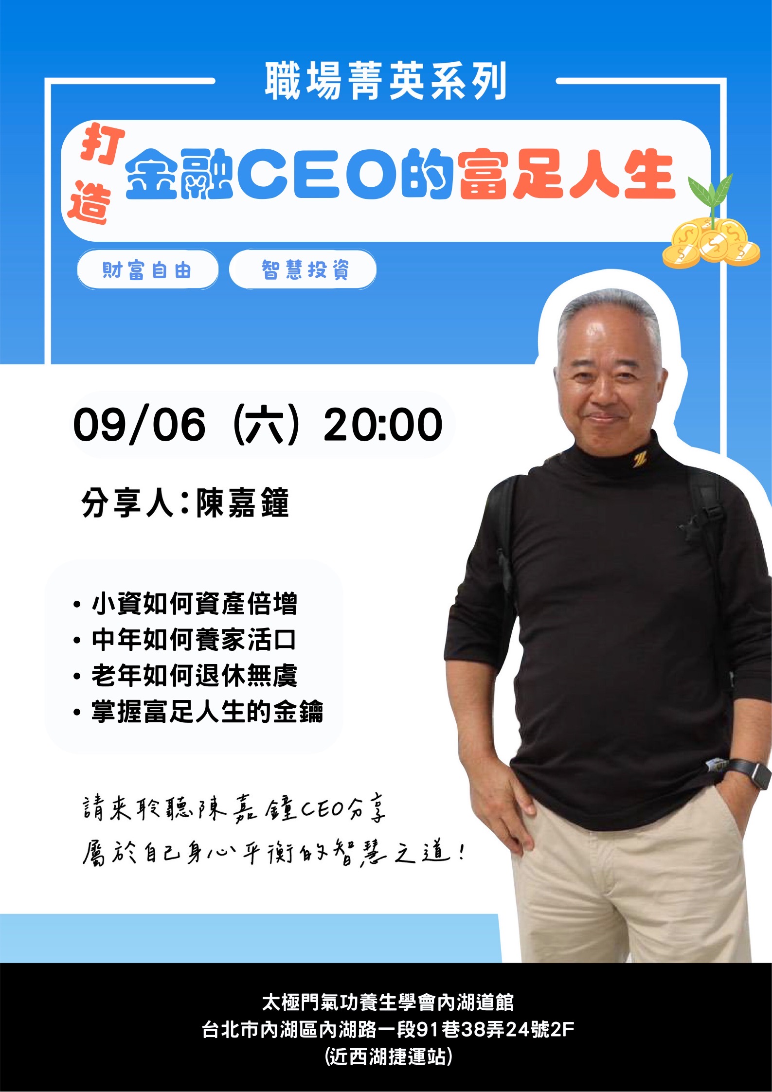 2025-08-30 18:30~20:00 內湖道館 (主講人:蔡忠憲 林淑英 李賢石 程淑韻)