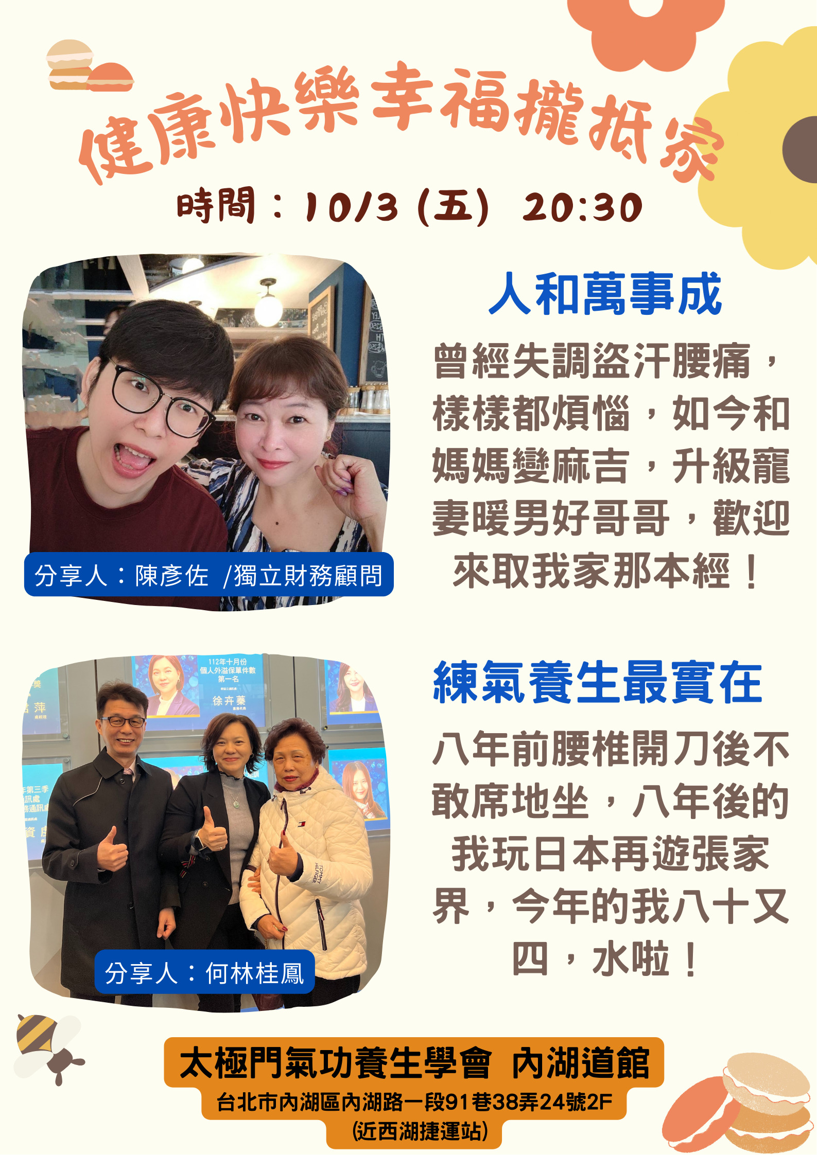 2025-10-03 20:30~21:30 內湖道館 (主講人:陳彥佐/何林桂鳳)