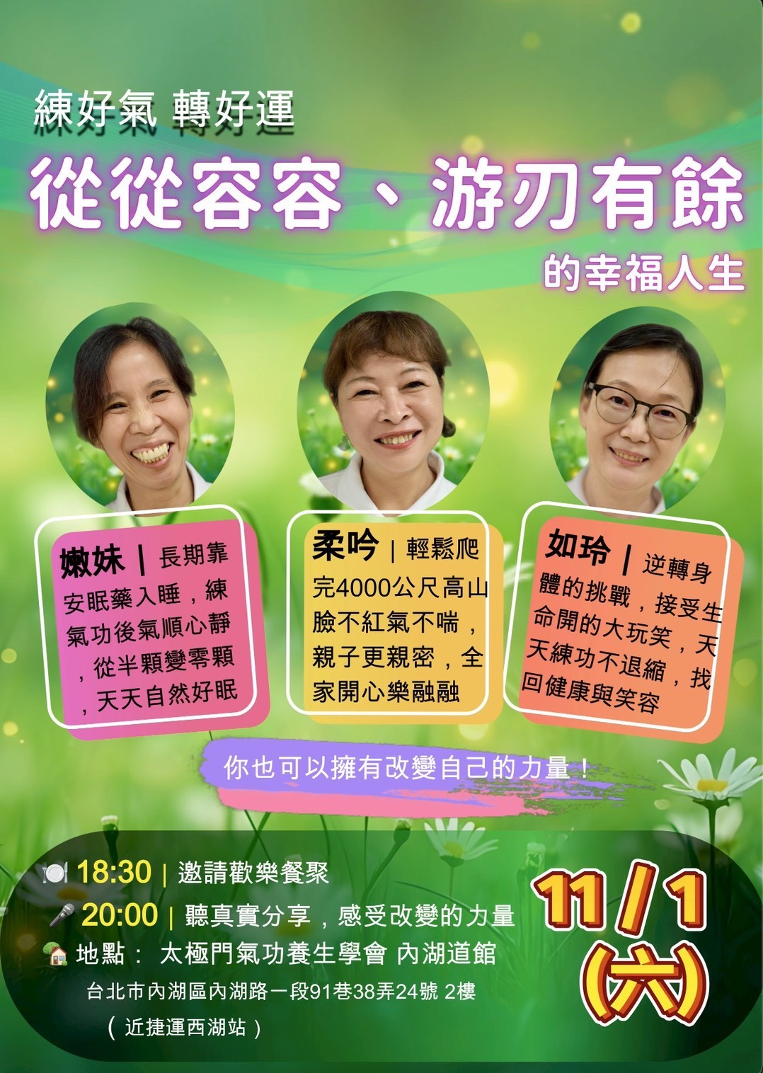2025-11-01 18:30~20:00 內湖道館 (主講人:嫩妹、柔吟、、柔吟、如玲)