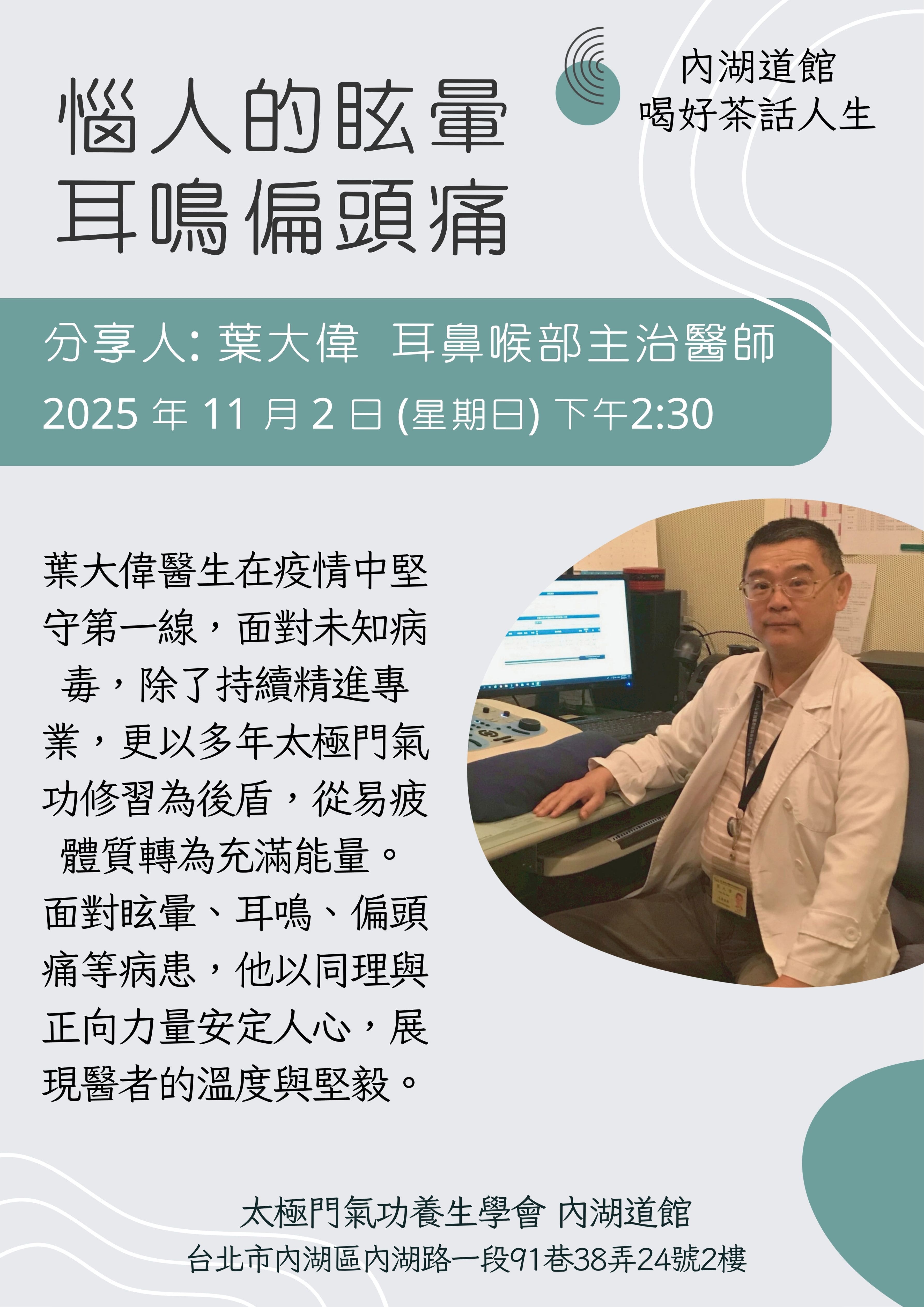2025-11-02 14:30~15:30 內湖道館 (主講人:葉大偉 師兄)