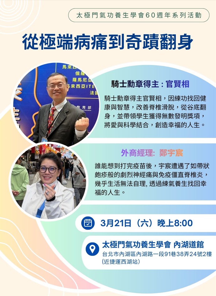 2026-03-29 14:30~15:30 內湖道館 (主講人:彭敏華)