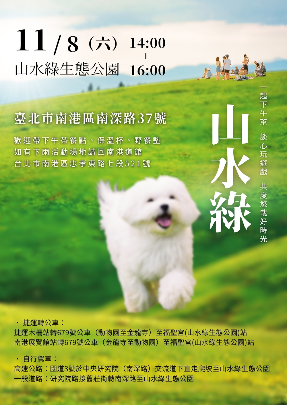前幾週一直下雨是不是好鬱悶,10月連假沒出去是不是好可惜。沒關係我們大家把握週末好天氣的空檔,一起外出踏青吃下午茶、談心玩遊戲,共度悠哉好時光