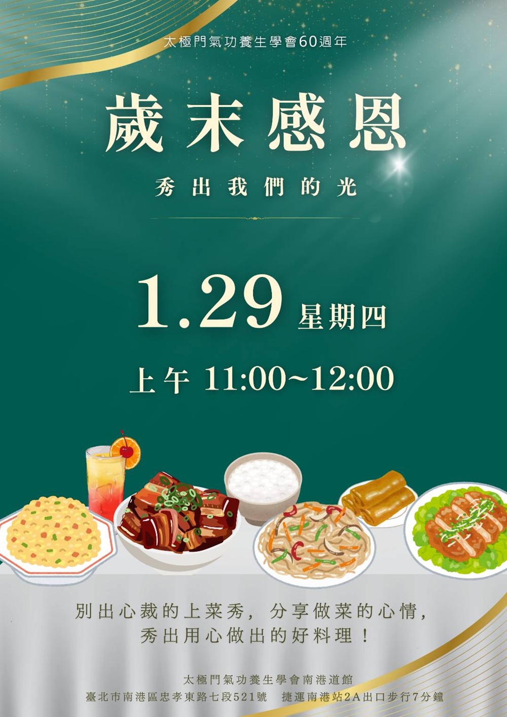 2026-01-29 11:00~12:00 南港道館 (主講人:師兄姊們)別出心裁的上菜秀,分享做菜的心情,秀出用心做出的好料理!