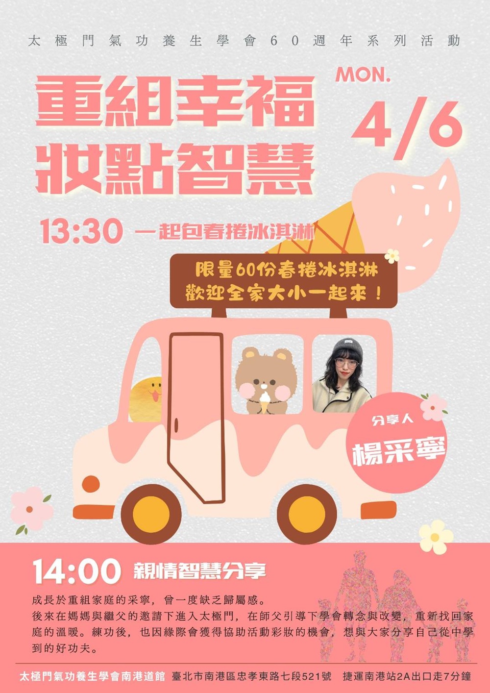 2026-04-06 13:30~15:00 南港道館 (主講人:楊采寧)