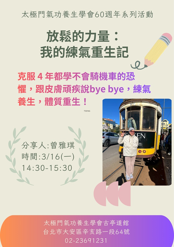 2026-04-13 14:30~15:30 古亭道館 (主講人:蔡佩玲 中醫師)
