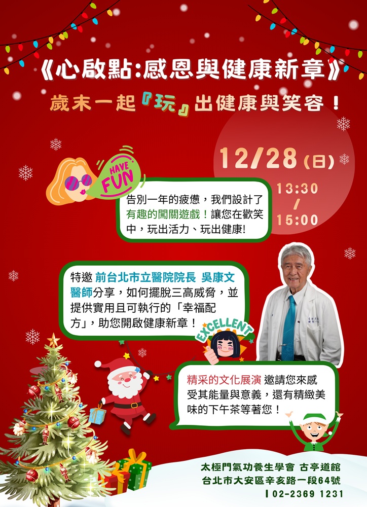 2025-12-28 13:30~15:00 古亭道館 (主講人:吳康文醫師 前台北市立醫院院院長)