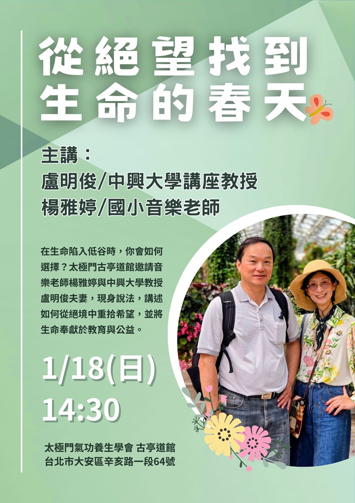 2026-01-18 14:30~ 古亭道館 (主講人:盧俊明/中興大學講座教授 楊雅婷/國小音樂老師)