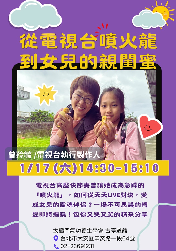 2026-01-17 14:30~15:10 古亭道館 (主講人:曾羚毓/電視台執行製作人)