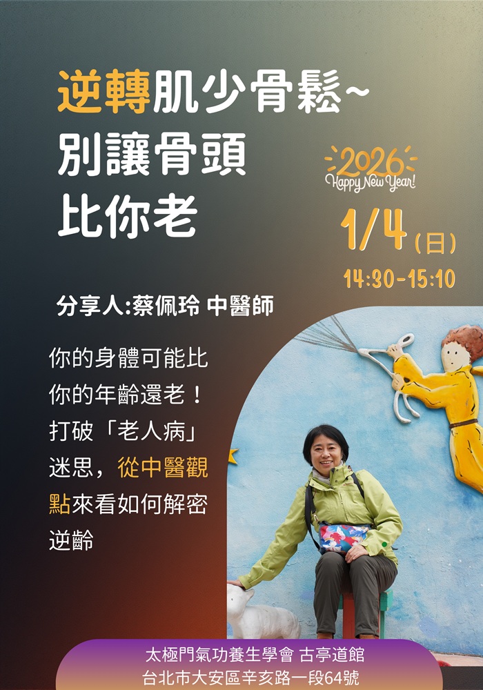 2026-01-01 14:30~15:10 古亭道館 (主講人:江時宇 中醫師)