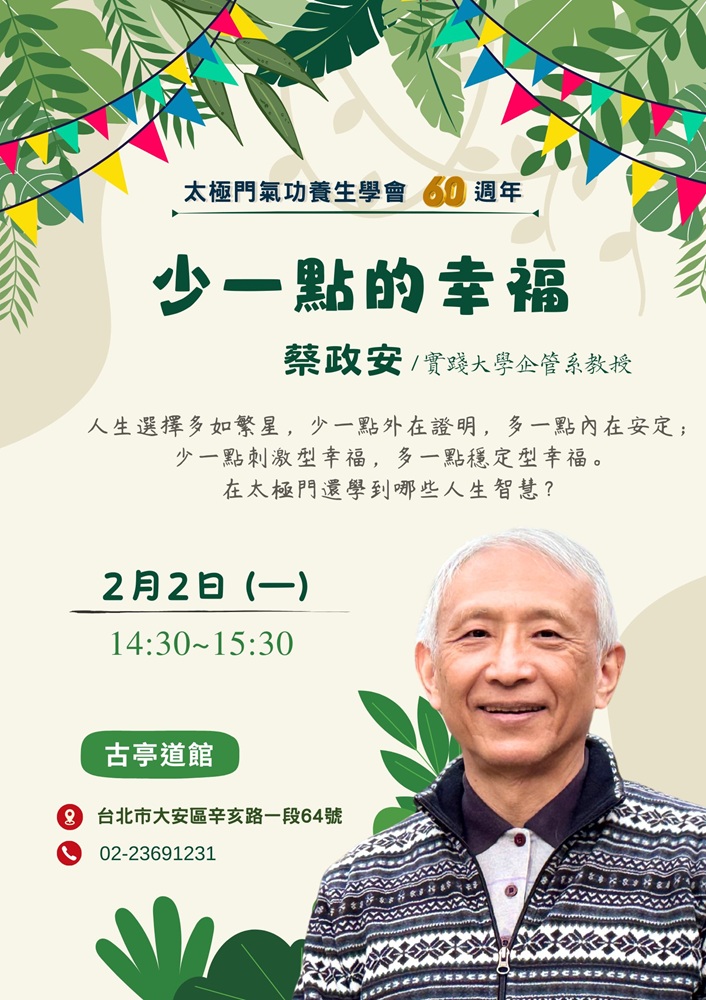 2026-02-02 14:30~15:30 古亭道館 (主講人:蔡政安/實踐大學企管系教授)