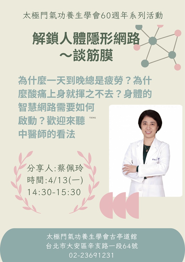 2026-04-13 14:30~15:30 古亭道館 (主講人:蔡佩玲 中醫師)