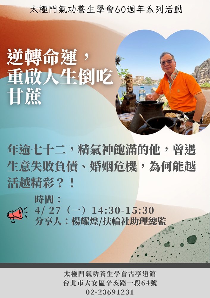 2026-04-19 14:30~15:10 古亭道館 (主講人:陳麗雪 退休老師)